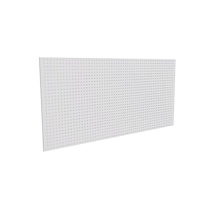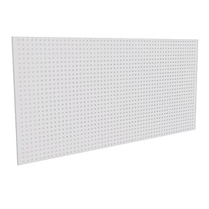 The tool board is designed for mounting on a wall. The metal plate is punched with 9 mm holes at 34 mm pitch spacing. With the addition of tool hooks it provides a flexible system for tool storage, etc.