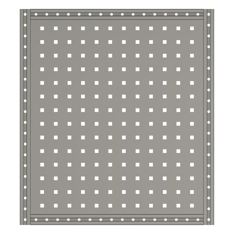 Shelf end supports with tool board are available in several heights and depths. The T-tracks integrated in the profiles are used for securing cargo, attaching accessories and for versatile surface mounting.