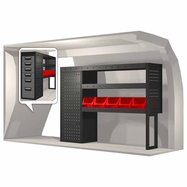 Zabudowa została zaprojektowana w sposób zapewniający optymalne dopasowanie do danego modelu atua przy zachowaniu maksimum funkcjonalności i bezpieczeństwa. Stworzona na potrzeby profesjonalistów, charakteryzuje się elastycznymi rozwiązaniami dla użytkowników z różnych branż. Wszystkie półki wyposażone są w wykładzinę gumową, a szuflady w wykładzinę piankową. Do poszczególnych modułów dołączone są niezbędne materiały montażowe.