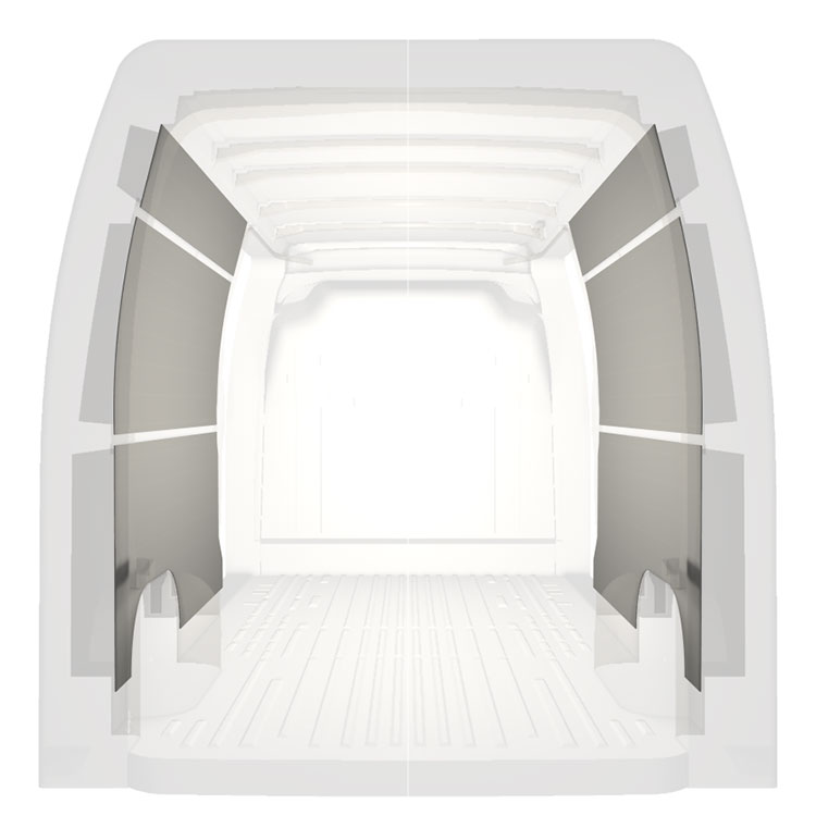 W celu optymalizacji masy, wycięte fabrycznie okładziny do samochodów dostawczych są dopasowane do przestrzeni między belkami pojazdu, co zapewnia ich nieinwazyjność oraz pozwala zmaksymalizować dostępną przestrzeń.