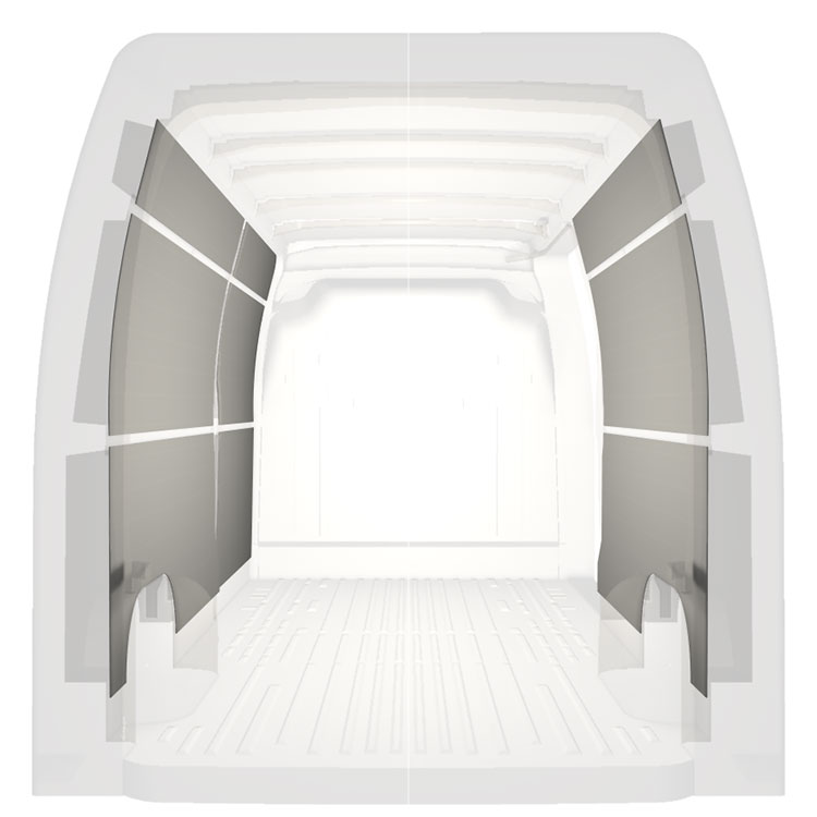 W celu optymalizacji masy, wycięte fabrycznie okładziny do samochodów dostawczych są dopasowane do przestrzeni między belkami pojazdu, co zapewnia ich nieinwazyjność oraz pozwala zmaksymalizować dostępną przestrzeń.