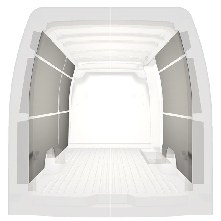 W celu optymalizacji masy, wycięte fabrycznie okładziny do samochodów dostawczych są dopasowane do przestrzeni między belkami pojazdu, co zapewnia ich nieinwazyjność oraz pozwala zmaksymalizować dostępną przestrzeń.