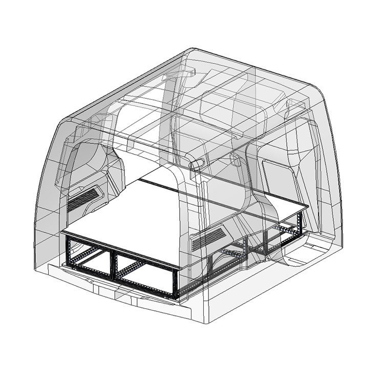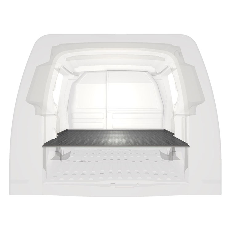 Double floor for a Citroën Berlingo/Peugeot Partner/Opel Combo L1 2019-. The floor is designed to fit an extra-long drawer solution with one drawer unit 486x972x270 and one 648x972x270 coming out from the rear doors, and one drawer unit 486x1296x270 coming out from the side door.
