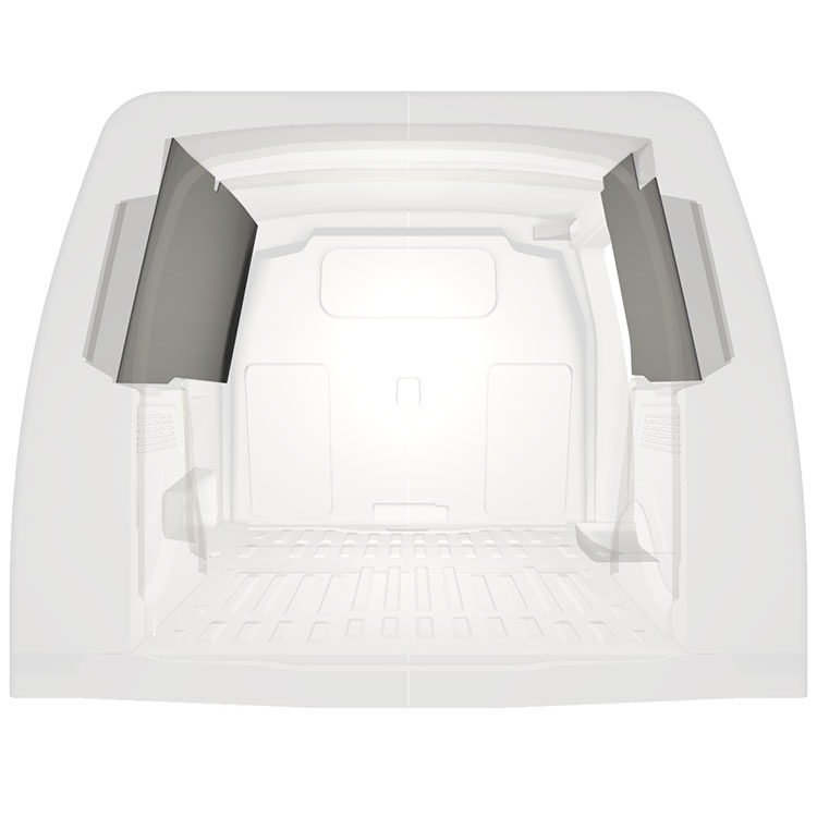 W celu optymalizacji masy, wycięte fabrycznie okładziny do samochodów dostawczych są dopasowane do przestrzeni między belkami pojazdu, co zapewnia ich nieinwazyjność oraz pozwala zmaksymalizować dostępną przestrzeń.