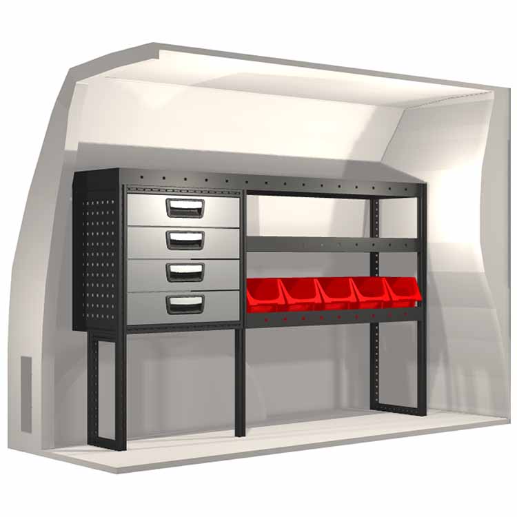 Zabudowa została zaprojektowana w sposób zapewniający optymalne dopasowanie do danego modelu atua przy zachowaniu maksimum funkcjonalności i bezpieczeństwa. Stworzona na potrzeby profesjonalistów, charakteryzuje się elastycznymi rozwiązaniami dla użytkowników z różnych branż. Wszystkie półki wyposażone są w wykładzinę gumową, a szuflady w wykładzinę piankową. Do poszczególnych modułów dołączone są niezbędne materiały montażowe.