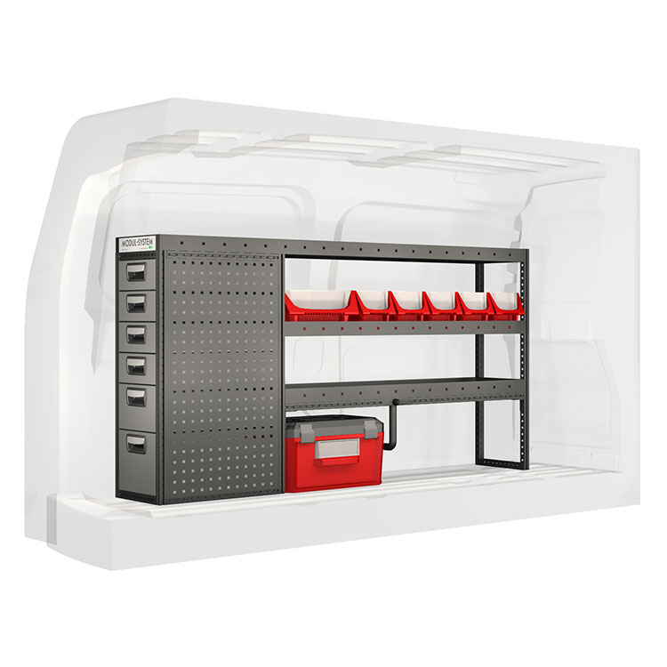 Zabudowa została zaprojektowana w sposób zapewniający optymalne dopasowanie do danego modelu atua przy zachowaniu maksimum funkcjonalności i bezpieczeństwa. Stworzona na potrzeby profesjonalistów, charakteryzuje się elastycznymi rozwiązaniami dla użytkowników z różnych branż. Wszystkie półki wyposażone są w wykładzinę gumową, a szuflady w wykładzinę piankową. Do poszczególnych modułów dołączone są niezbędne materiały montażowe.