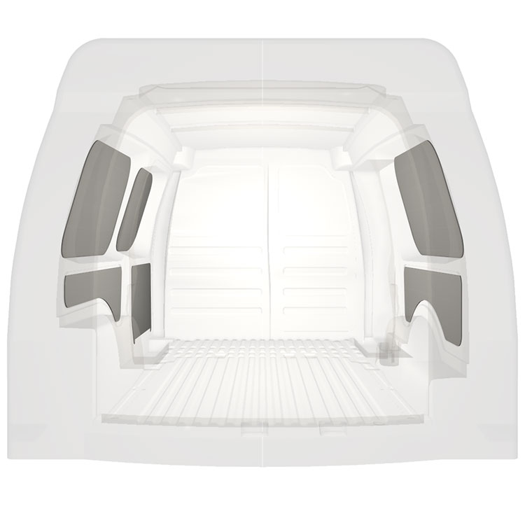 W celu optymalizacji masy, wycięte fabrycznie okładziny do samochodów dostawczych są dopasowane do przestrzeni między belkami pojazdu, co zapewnia ich nieinwazyjność oraz pozwala zmaksymalizować dostępną przestrzeń.