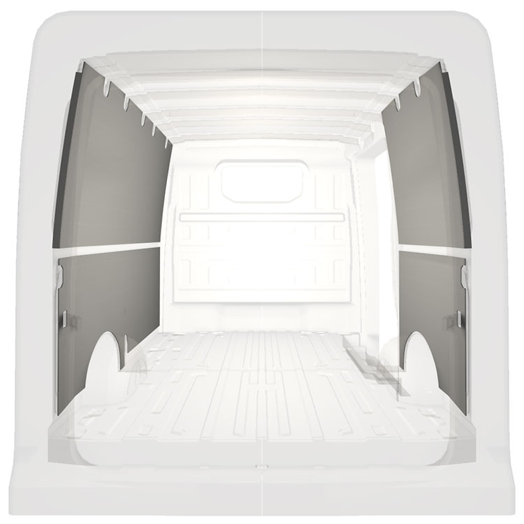 W celu optymalizacji masy, wycięte fabrycznie okładziny do samochodów dostawczych są dopasowane do przestrzeni między belkami pojazdu, co zapewnia ich nieinwazyjność oraz pozwala zmaksymalizować dostępną przestrzeń.