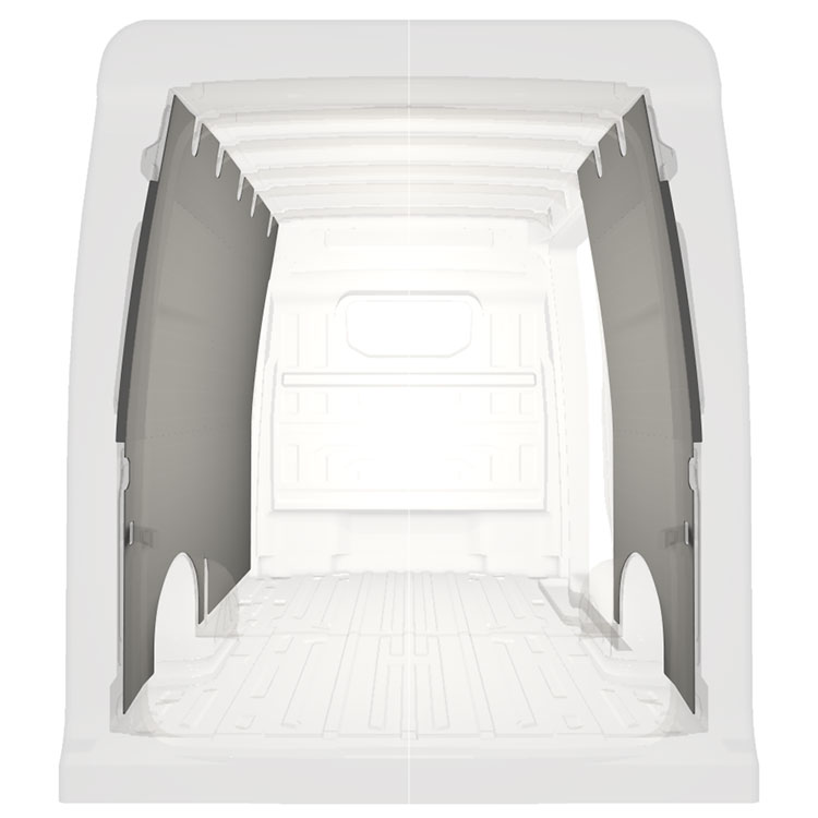 W celu optymalizacji masy, wycięte fabrycznie okładziny do samochodów dostawczych są dopasowane do przestrzeni między belkami pojazdu, co zapewnia ich nieinwazyjność oraz pozwala zmaksymalizować dostępną przestrzeń.