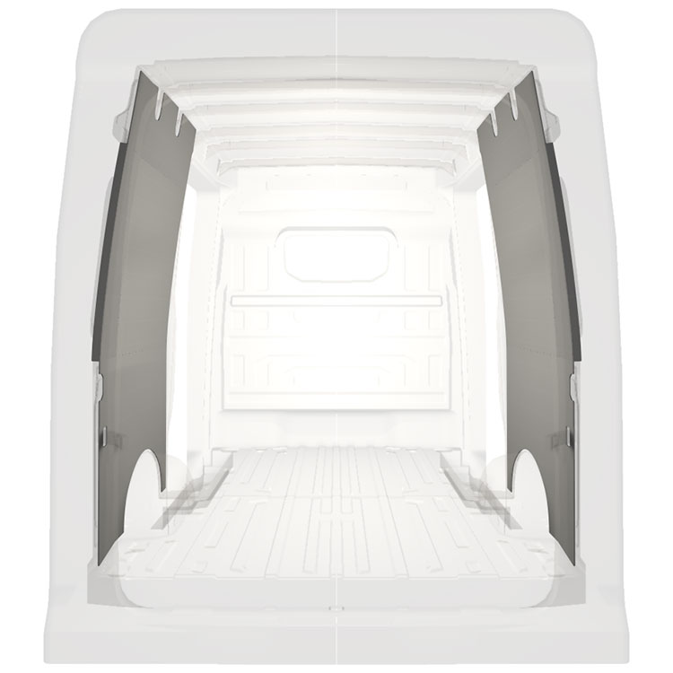 W celu optymalizacji masy, wycięte fabrycznie okładziny do samochodów dostawczych są dopasowane do przestrzeni między belkami pojazdu, co zapewnia ich nieinwazyjność oraz pozwala zmaksymalizować dostępną przestrzeń.