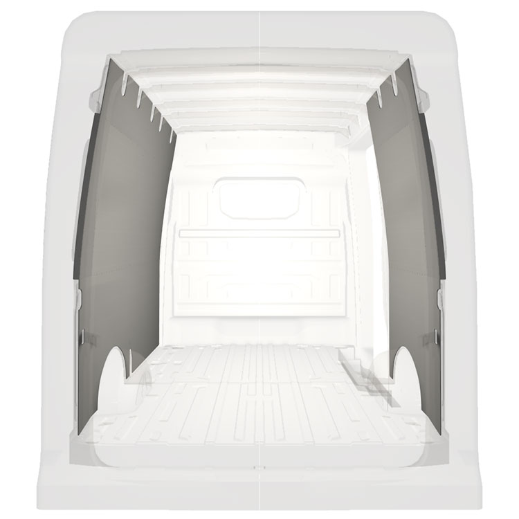 W celu optymalizacji masy, wycięte fabrycznie okładziny do samochodów dostawczych są dopasowane do przestrzeni między belkami pojazdu, co zapewnia ich nieinwazyjność oraz pozwala zmaksymalizować dostępną przestrzeń.