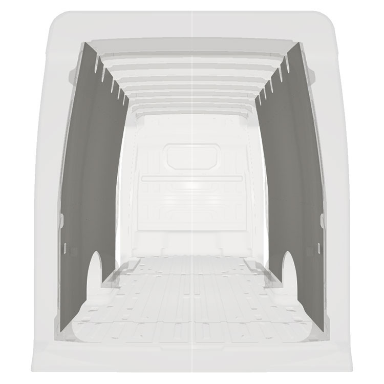 W celu optymalizacji masy, wycięte fabrycznie okładziny do samochodów dostawczych są dopasowane do przestrzeni między belkami pojazdu, co zapewnia ich nieinwazyjność oraz pozwala zmaksymalizować dostępną przestrzeń.