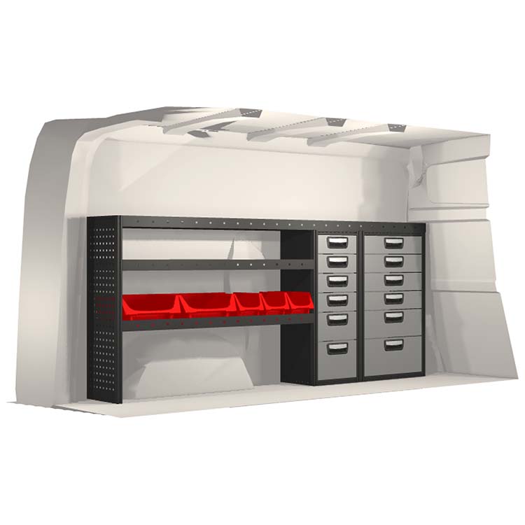 Zabudowa została zaprojektowana w sposób zapewniający optymalne dopasowanie do danego modelu atua przy zachowaniu maksimum funkcjonalności i bezpieczeństwa. Stworzona na potrzeby profesjonalistów, charakteryzuje się elastycznymi rozwiązaniami dla użytkowników z różnych branż. Wszystkie półki wyposażone są w wykładzinę gumową, a szuflady w wykładzinę piankową. Do poszczególnych modułów dołączone są niezbędne materiały montażowe.