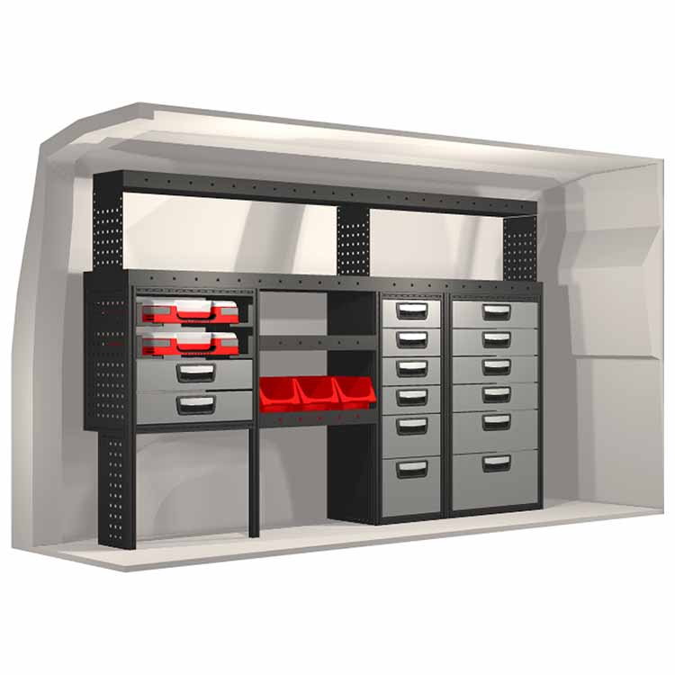 Zabudowa została zaprojektowana w sposób zapewniający optymalne dopasowanie do danego modelu atua przy zachowaniu maksimum funkcjonalności i bezpieczeństwa. Stworzona na potrzeby profesjonalistów, charakteryzuje się elastycznymi rozwiązaniami dla użytkowników z różnych branż. Wszystkie półki wyposażone są w wykładzinę gumową, a szuflady w wykładzinę piankową. Do poszczególnych modułów dołączone są niezbędne materiały montażowe.