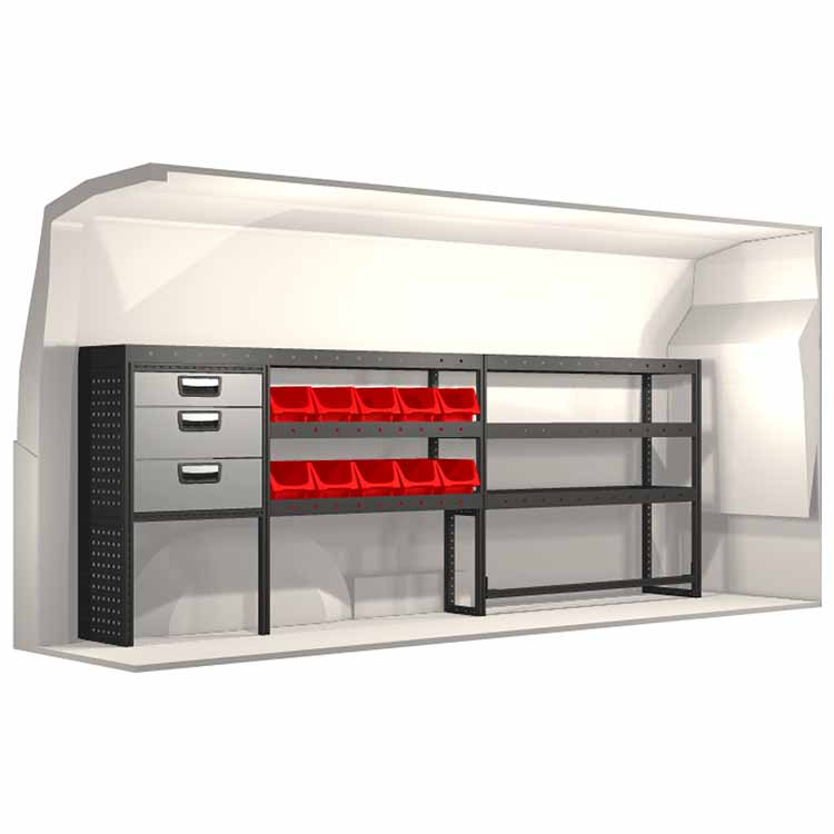 Zabudowa została zaprojektowana w sposób zapewniający optymalne dopasowanie do danego modelu atua przy zachowaniu maksimum funkcjonalności i bezpieczeństwa. Stworzona na potrzeby profesjonalistów, charakteryzuje się elastycznymi rozwiązaniami dla użytkowników z różnych branż. Wszystkie półki wyposażone są w wykładzinę gumową, a szuflady w wykładzinę piankową. Do poszczególnych modułów dołączone są niezbędne materiały montażowe.